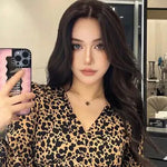 • Leopard-print skirt and a black four-leaf clover necklace. The combination exudes a luxurious and sophisticated vibe. I am extremely satisfied with this shopping experience. I also purchased several other colors, including red, green, and blue.